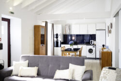 Os apartamentos T2 incluem 2 quartos, sendo um deles com casa de banho privativa, uma casa de banho partilhada, 1 cozinha, 1 sala de estar e uma despensa.